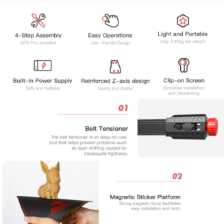 Ender-2 Pro vă satisface în mod cuprinzător nevoile pentru ușurința asamblării. Produsul este un dispozitiv preinstalat în proporție de 90%. Trebuie doar să strângeți 7 șuruburi și asta este!