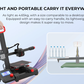 Puteți muta imprimanta 3D Ender-2 Pro peste tot. Cu greutatea de 4.65 kg, o dimensiune comparabilă cu un ventilator de masă, echipat cu un mâner rigid, puteți transporta imprimanta în orice loc convenabil pentru lucrul cu ea.