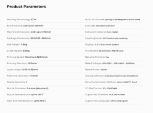 ♦️Completat cu un Design all-in-one și extruder Bowden integral din metal care face imprimare stabilă, dimensiune de imprimare 220x220x250mm, cu extruder Bowden complet din metal.
