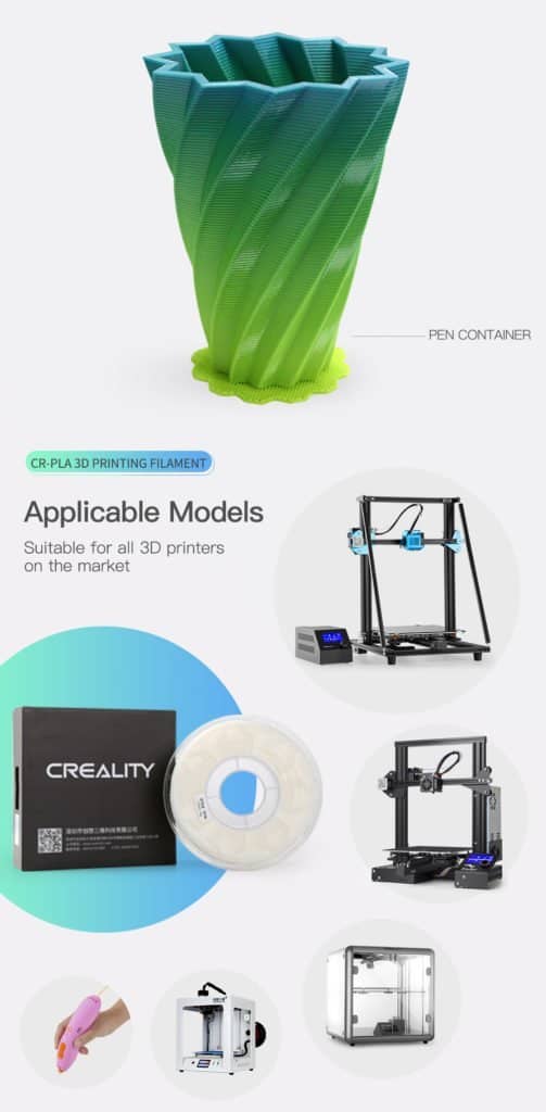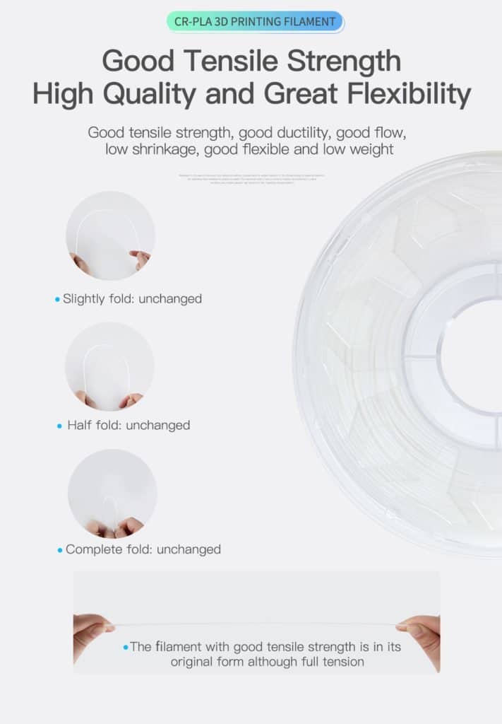 - Temperatură de imprimare scăzută, comparativ cu alte tipuri de filament;
