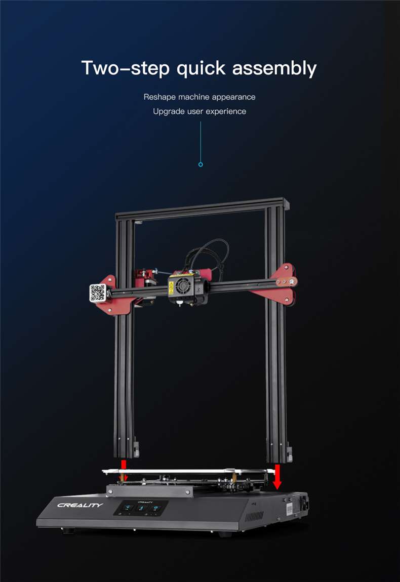 Este o imprimantă Creality care a reușit să se bucure de un mare succes, obținând titlul Editor’s Choice în cadrul recenziilor din anul 2020. Are suprafața de lucru de 300 × 300 × 400 mm, fiind dotată și cu platformă din carborundum, pentru a asigura aderența primului strat, dar și pentru a ușura îndepărtarea produsului finit. Alte avantaje ale imprimantei sunt: