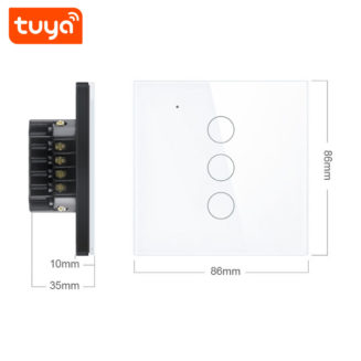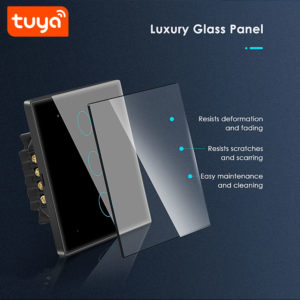 Întrerupător Touch Triplu este un întrerupator din sticla cu touch, ce poate fi controlat tactil, prin aplicația pentru smartphone de la Tuya.