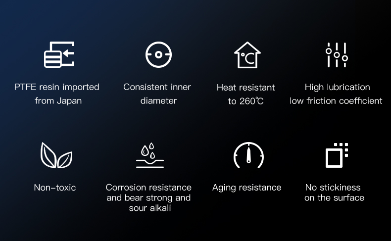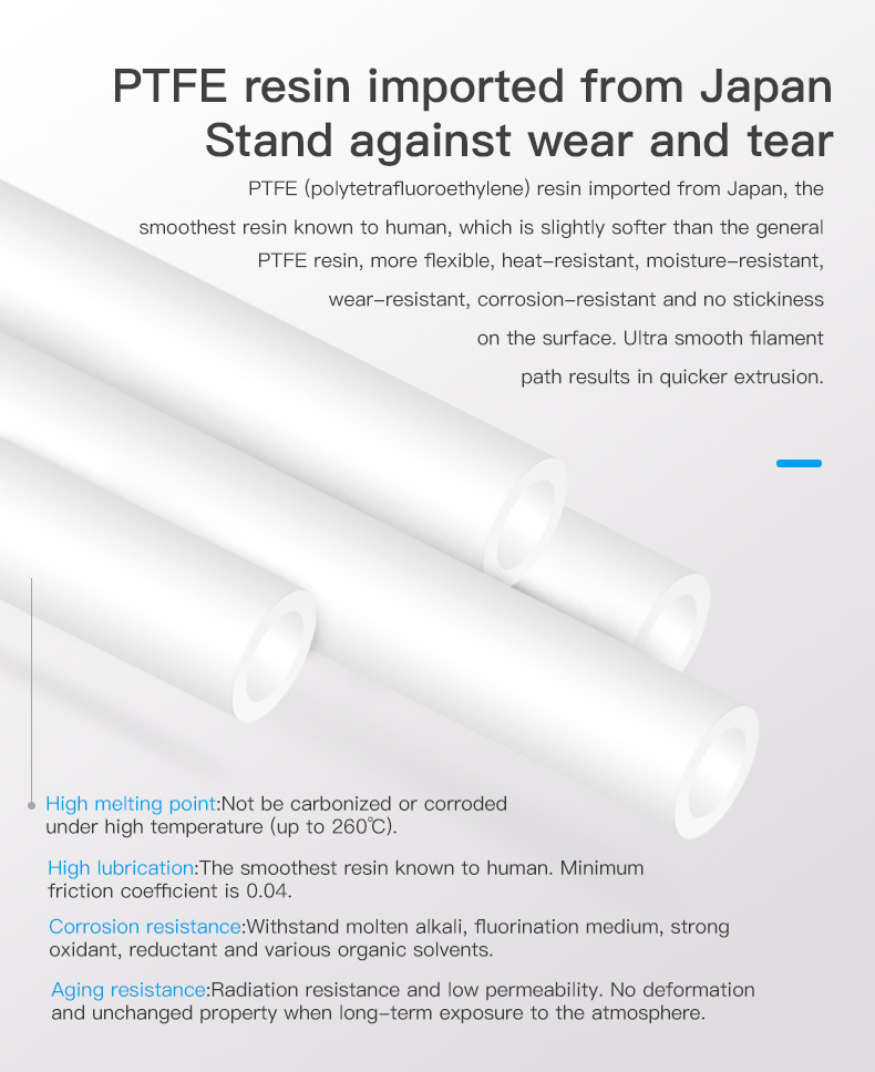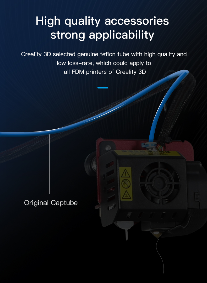 Capricorn PTFE Bowden Tube este îmbunătățit cu un amestec propriu de aditivi de înaltă performanță. Ceea ce oferă si rezistență mare la temperaturi înalte.